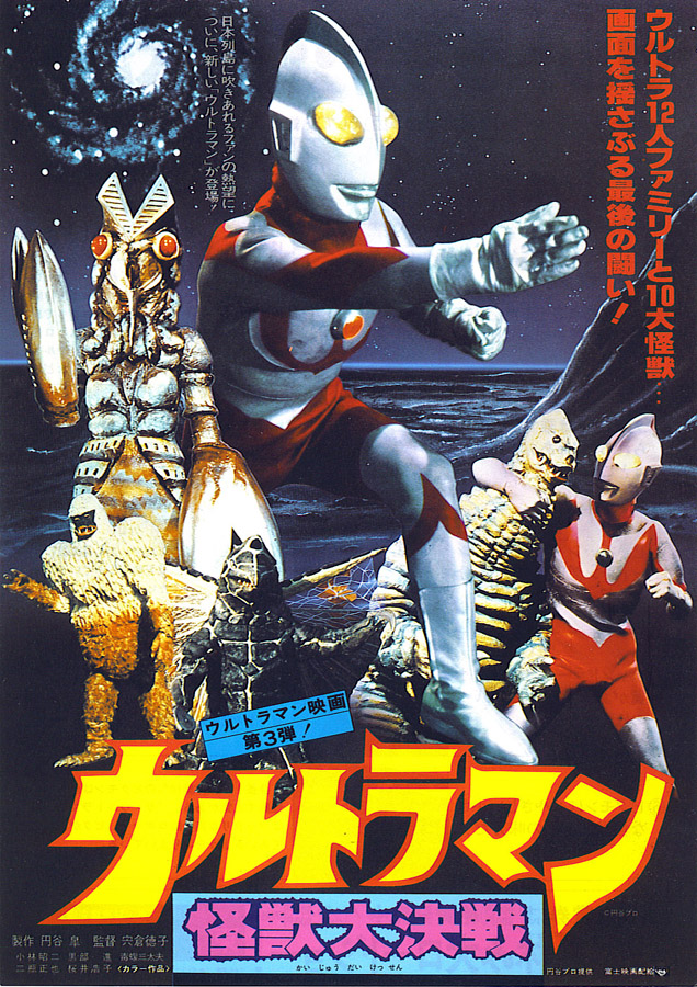 DIRECTOR AKIO JISSOJI’S ULTRAMAN Japanese Title: ??????????????? (Jissoji Akio Kantoku Sakuhin Urutoraman) Literal Translation: Ultraman The Movie: Directed by Akio Jissoji Release Date: March 17, 1979 Running Time: 102 minutes Aspect Ratio: 1.66:1 (Vista) Production: Tsuburaya Productions Co., Ltd. Distributor: Shochiku Fuji Co., Ltd. Producer: Noboru Tsuburaya Director: Akio Jissoji FX Directors: Koichi Takano, Kazuo Sagawa, Kiyoshi Suzuki, Minoru Nakano Writer: Mamoru Sasaki Cinematographers: Yasumichi Fukuzawa, Masaharu Utsumi Music: Kunio Miyauchi Theme Song: Isao Sasaki Cast Shin Hayata: Susumu Kurobe Captain Toshio Muramatsu: Akiji Kobayashi Daisuke Arashi: Sandaiyu Dokumamushi Mitsuhiro Ide: Masanari Nihei Akiko Fuji: Hiroko Sakurai Ultraman: Satoshi "Bin" Furuya Narrator: Mitsu Urano Story: After being teased at school for his monster drawing, a young boy named Mushiba goes to a pipe-yard and draws his creation, Gavadon, on the side of a large pipe. Strange cosmic rays emanating from space, cause the child’s drawing to come to life. The Science Patrol arrive to attack the creature, but all it does is sleep until nightfall when it suddenly disappears. Once the children discover that Mushiba’s drawing has come to life, they take crayon in hand and add more details and color to the monster, which up to now only looked like a white tadpole. As sunrise approaches, the monster lives again, sleeping the day away. All life and business in the city comes to a grinding halt. The Science Patrol again attacks Gavadon, and the enraged monster fights back. Ultraman appears and battles Gavadon, finally lifting the beast up and flying off into space. Later that night, he appears to the children in the sky and tells them that on this night each year they can look up and see Gavadon as a constellation amongst the stars. Anne Mulhiem arrives from the Paris branch of the Science Patrol to escort Hayata back for temporary assignment in Paris. Soon after they leave, communications around the world go haywire. Dr. Fukuyama pinpoints the cause as magnetic waves. Ide and Arashi, returning from patrol, see Anne who is supposed to be in Paris with Hayata. They find the device that was causing the interference. Dr. Fujiyama discovers an ore on it that originates from far underground. The monster Telesdon appears and begins attacking the city. As the SIA battles the monster, its controllers have Hayata strapped to a table, 275 miles below the surface. His captors tell him that they plan to use the surface dwellers as their slaves, with the help of Ultraman. Hypnotized, Hayata is ordered to turn into Ultraman. But as he transforms to Ultraman there is a blinding flash which blinds the underground race. Flying back to the Earth`s surface, Ultraman quickly defeats Telesdon. Hayata and Anne return to Patrol headquarters. Anne explains that they had been captured by the underground people, one of whom was her exact twin. The mystery solved, Hayata and the real Anne leave for Paris once again. Tokyo is the sight of an International Space Conference. As delegates travel to this historic event, mysterious accidents occur, killing many before they can arrive. The Science Patrol travels to the scene of one of the accidents, but their car runs into an invisible barrier. The hear but cannot see a rocket taking off on the far side of the barrier. Muramatsu theorizes that the rocket is spinning so fast that it is invisible to the naked eye, and Ide invents a way to shoot light waves of different spectrum from the VTOLs. The waves contract the warping of light caused by the spinning craft makes it visible. The Patrol then able to fire upon and destroy the ship. Soon after, a monster appears. Alan, a Patrol member from the Paris branch explains that the creature is Jamilar, a former astronaut who returned to Earth after his rocket was lost. Mutated by space rays, he now seeks revenge upon the human race. Once hearing this, Ide argues that they can not destroy a man, but the others tell him that Jamilar who istrying to ruin the Earth’s peace by interfering with the Space Conference. It is discovered that water depletes Jamilar’s strength, and water canons are used to subdue him. Hayata changes to Ultraman and uses water jets from his hands to weaken the monster further and finally kill him. A memorial is created outside the Space Conference sight and the Science Patrol mourns the tragic end of one of the pioneers of space exploration. Many things fall from the sky. Snow falls at Patrol headquarters. Soon it becomes slush and rain. Muramatsu, eating in a restaurant, calls for an umbrella. Hayata, flying over in a VTOL, drops one to him. Ide sees a man leap from a rooftop, dying on impact. A meteor crashes to Earth. The monster Skydon emerges from the crater. His mass is so great that his feet sink into the ground as he walks. As the monster sleeps, the Science Patrol tries a series of increasingly ludicrous schemes to airlift Skydon back into space. Ultraman also tries his best but cannot lift the creature. Bored with the fight, Skydon returns to sleep as Ultraman`s energy runs low, forcing him to fly off. Finally, Arashi shoots a hose into Skydon and the Science Patrol pump him full of hydrogen, causing him to float into the sky. Later, Army bombers on a routine training flight see the monster drifting in the air and shoot him down. As word gets to Patrol headquarters, they are in the middle of a meal. Hayata gets up and runs out of the building, changing to Ultraman. He rams Skydon in a midair collision, bursting the monster as what little hydrogen left inside the monster ignites on impact. With the monster destroyed, the SIA enjoy a casual picnic. Cherry blossoms fall to the ground. Fuji watches a bird crap on Arashi’s shoulder. Good and bad things come from the sky. Fuji asks, “Why can’t flowers continue to fall from the sky, instead of monsters?” Ide and Arashi are on patrol in space. They come across 
