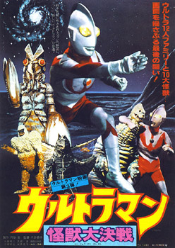 ULTRAMAN: GREAT MONSTER BATTLE Japanese Title: ??????????? (Urutoraman Kaiju Daikessen) Literal Translation: Ultraman Giant Monster Battle Release Date: July 21, 1979 Running Time: 100 minutes Aspect Ratio: 1.66:1 (Vista) Production: Tsuburaya Productions Co., Ltd. Distributor: Shochiku Fuji Co., Ltd. Producer: Noboru Tsuburaya Director: Noriko Shishikura (new footage), Toshihiro Iijima and Hajime Tsuburaya (original episodes) FX Directors: Eiji Tsuburaya, Hajime Tsuburaya, Koichi Takano, Tetsu Matoba Writers: Toshihiro Iijima, Kitao Chiba Music: Kunio Miyauchi, Tohru Fuyuki Theme Song: Ichiro Mizuki Cast Shin Hayata: Susumu Kurobe Captain Toshio Muramatsu: Akiji Kobayashi Daisuke Arashi: Sandaiyu Dokumamushi Mitsuhiro Ide: Masanari Nihei Akiko Fuji: Hiroko Sakurai Ultraman: Satoshi "Bin" Furuya Hoshino: Akihide Tsuzawa Dr Iwamoto: Akihiko Hirata Dr Mori: Tadao Ikeda Chief of Staff: Susumu Fujita Matsui: Asao Matsumoto Story: Far out in space -- 300 thousand light years from the planet Earth -- lies the Nebula M78. Within that nebula is the planet referred to as the Land of Light: Planet Ultra, the homeworld of the Ultra warriors. The Ultramen gather for an audience with Ultraman King. Suddenly, the King senses that Ultraman`s human host Hayata may be in danger. Ultraman races to the rescue. On Earth, contact is lost with a scientific research outpost on remote Tatara Island in the Pacific. The Science Patrol is sent to rescue the stranded scientists but instead finds the island is overrun with the giant monsters Red King, Chandlar, Magula and the carnivorous plants Suflan. With the help of the friendly monster Pigmon, the Patrol finds Matsui, the sole survivor on the island. But before they can get to safety, Red King appears and kills Pigmon. Hayata turns into Ultraman and makes short work of Red King. Ultraman then returns to M78 for a reunion with the Ultra Brothers. The Science Patrol receives reports of strange rumblings heard at the bottom of a well near an ancient castle and a hydroelectric plant in the Kanto plains. Hayata sends Fuji and Hoshino to investigate, and Hoshino descends into the well where he sees the eye of a huge creature.The Patrol arrives shortly before the monster Neronga emerges from the mountainside and starts attacking the Iwa power station. The monster is completely invisible until it begins to feeds on the electricity. When Neronga attacks a thermal power plant, Hoshino sneaks off with Arashi`s Spider Shot gun and fires it at the beast. The blasts damage Neronga`s eye, and it angrily heads for Hoshino. Seeing this, Hayata becomes Ultraman and defeats the monster. An alien spaceship lands near the Science Center in Gotenyama. When Arashi arrives at the Science Center, he finds guards frozen in place. He confronts a lobster-like alien who freezes Arashi in the same manner. Escorted by Hayata, Ide sets out for the Science Center to try to communicate with the aliens. Unable to understand his attempts, the aliens instead speak to him and Hayata by inhabiting Arashi’s mind. It is revealed that they are a race from the planet Baltan. Their planet was destroyed by a nuclear test conducted by a rogue scientist and now they are looking for a new world to make their own. Releasing Arashi, the Baltan becomes giant-sized and begins attacking the city. Using the Beta Capsule, Hayata becomes Ultraman flies after Baltan. The two aliens engage in aerial combat, before crashing to earth. The Baltan splits into two, and Ultraman is hard pressed as both opponents constantly disappear and reappear before his eyes. Ultraman is finally able to destroy one of the pair then pursues the other back into the sky. A blast of the Specium Ray finally kills the Baltan. After their initial defeat, the Baltans next capture the space rocket Ohtori and its inventor/pilot Dr. Mori with the goal of luring Ultraman and the Science Patrol away from Earth so they can attack with minimal opposition. As Muramatsu, Arashi and Hayata take off in the Jet VTOL, Ide remains behind and engages an army of Baltans with his new Mars 133 ray gun. The Patrol finds the Ohtori on the surface of a nearby planet, but the possessed Dr. Mori suddenly changes into a giant Baltan and destroys their ship. Hayata becomes Ultraman and slices the alien in two with his Shredding Halo. Using the power of teleportation, which quickly reduces his strength, Ultraman appears on Earth to defeat the Baltans, now combined into their larger form. The battle won, Ultraman returns home to M78. A comet called Tsuifon will pass dangerously close to the Earth. Dr. Iwamoto calculates that rays from the comet could trigger H-Bombs, six of which were recently lost at sea during a disposal junket. Most of the bombs have been recovered, except for two which were reportedly swallowed by a creature. Ide, Hayata and Arashi set out to find the missing bombs, tracking them to the Japan Alps. Tsuiphon streaks by, causing no damage... though the space monster Dorako flies from the comet and heads for Earth. Meanwhile, the Patrol has come across the giant snow ape Guigass, but Ide`s Nuclear Locator invention shows the monster is not the one who swallowed the bombs. Dorako soon arrives and the two monsters engage in a titanic struggle. This awakens the monster Red King, who emerges from a nearby hillside as Ide’s device reacts to the bombs lodged in Red King’s throat. Red King joins the battle, but Ide, Hayata and Arashi worry that the conflict may set off the bombs and attempt to separate the monsters. Once Dorako is finished off, Ide and Arashi destroy Guigass with a new weapon, the Cellular Disintegrator Bomb. Hayata transforms into Ultraman, levitates Red King into the air and slices the monster into three pieces with his Shredding Halos. He carries the head and neck off to space where the bombs can explode harmlessly. Notes: Inspired by the strong performances of SIX ULTRA BROTHERS VS THE MONSTER ARMY and DIRECTOR AKIO JISSOJI’S ULTRAMA