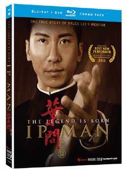 Combo Pack art for THE LEGEND IS BORN – IP MAN. Photo courtesy of FUNimation Entertainment. © 2010 Mei Ah Entertainment.THE LEGEND IS BORN – IP MAN Blu-ray/DVD Combo Release Date: 4/16/2013 SRP: $19.98 Running Time: 100 Minutes Aspect Ratio: 1.78:1 Discs: 2 Rating: TVMA Languages: Cantonese, English Subtitles: English THE LEGEND IS BORN – IP MAN DVD Release Date: 4/16/2013 SRP: $19.98 Running Time: 100 Minutes Aspect Ratio: 1.78:1 Discs: 1 Rating: TVMA Languages: Cantonese, English Subtitles: English For the first time, witness the early years of the revolutionary grandmaster who trained Martial arts superstar and cultural icon, Bruce Lee. Packed with Kung Fu combat and thick with drama, THE LEGEND IS BORN follows Ip Man as he grows from a promising young pupil into an unstoppable force. When political corruption threatens his temple, his friends and his honor, Man single-handedly challenges a swarm of shinobi in an ultimate showdown. This high-impact masterpiece features a blind-folded battle between film stars Sammo Hung and Yuen Biao, and an appearance by Ip Man’s real son. Special Features include Making Of, Original Trailer and Previews.