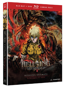 HELLSING ULTIMATE: Volumes 5-8 Blu-ray/DVD Combo Box Set Release Date: 11/13/2012 SRP: $69.98 Running Time: 180 Minutes Discs: 5 Rating: TVMA Languages: English, Japanese, English subtitles Remember when vampires had fangs? Remember when they were known as terrifying monsters that stalked the night, instead of moody teenagers that sparkle in daylight? It’s time to drive a stake through the lovesick heart of contemporary vampire nonsense. Satisfy your bloodlust with HELLSING ULTIMATE, the definitive action-horror anime. The rogue vampire Alucard is the Hellsing Organization’s deadliest instrument in its mission to protect the British Empire from satanic ghouls and Nazi freaks. He is not alone in his assault on the occult; the master has a servant. Policewoman Seras Victoria accepted Alucard’s gift of dark salvation after falling in the line of duty, and now the remnants of her human soul struggle against her growing vampire urges. Together, they haunt the shadows as a sinister force of good -- and tonight the foggy streets of England shall flow with the blood of their evil prey. Special Features: Episode Commentary, Dubbing Hellsing - The 10th year Anniversary Interviews, Hellsing Cast Round Table Discussion, Anime Vegas 2010 Hellsing Panel, Fans` Questions Answered, The Dawn: A Supplementary of Hellsing, Textless Closing Songs, U.S. Trailer, Previews.