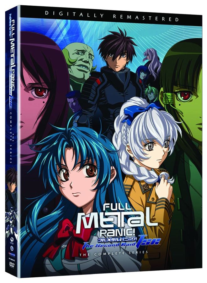 FULL METAL PANIC! THE SECOND RAID: THE COMPLETE SERIES October 13 $59.98 Official Site: funimation.com/fullmetalpanic It`s tough to keep your grades up without having to take off at a moment`s notice to save the world. But for Sousuke Sagara, undercover high school student and member of the mercenary group Mithril, life in Tokyo seemed the same as always. But underneath the promising exterior spin the wheels of a conspiracy that threaten to destroy the peace. A new threat has arisen: Amalgam. An unknown element with advanced mech technology, this mysterious organization has been running things from behind the scenes. As dissension spreads throughout the ranks of Mithril, Sousuke faces his own internal struggle. Spread thin between schoolwork and war, the powers that be have decided to lighten his load... beginning with Kaname! Life and death hang in the balance as the clash between good and evil scale new heights. When the smoke clears, Sousuke`s path will be the one that he forges for himself. 13 Episodes Bonus EPISODE 00 Bonus OVA: TESSA`S EVENTFUL DAY Japanese Audio, English Audio English Subtitles 7 Part Featurette: LOCATION SCOUTING IN HONG KONG Textless Songs Trailers Run Time: 450 Minutes Rating: TV-14