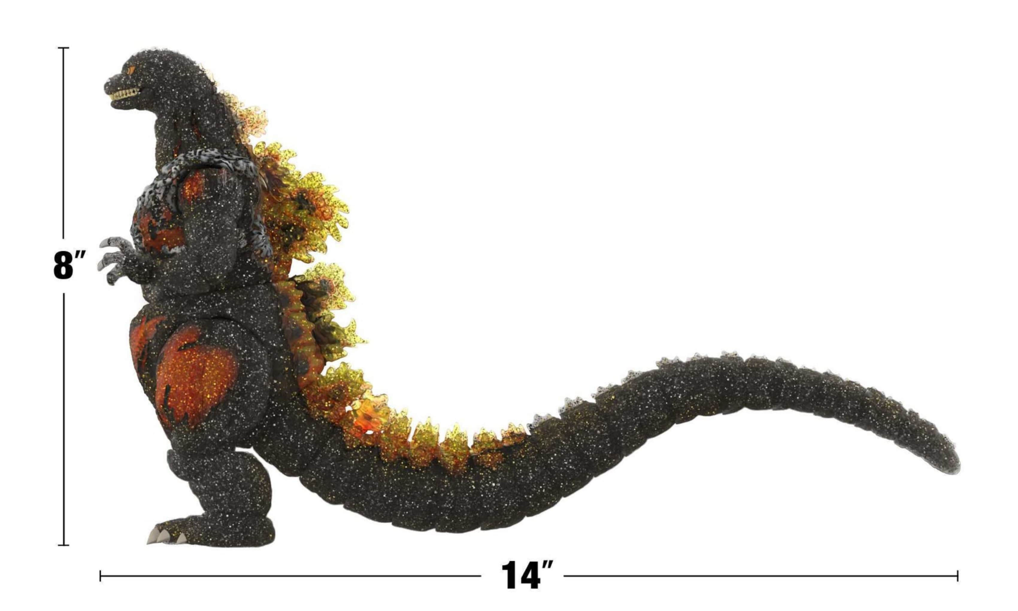 Made with glitter-injected plastic, it includes interchangeable sets of long and short chest effects, as well as a pair of removable smoke effects, allowing you to recreate the dramatic moments before Godzilla unleashes its most devastating attack. What’s more, LED lights in the figure’s upper torso can be toggled on to shine through the translucent areas of the mighty kaiju’s body and removable chest effects!