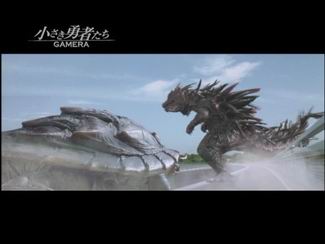 Toto Gamera slides in to save the day when Zedus threatens the residents of Iseshima © 2006 Chiisaki Yusha-tachi Gamera/Kadokawa Pictures, Inc.In the wake of the popularity of "Making of" DVDs such as 2001`s THE MATRIX REVISITED and promotional items such as 2004`s GODZILLA BATTLE HISTORY, the Japanese market for such releases seems to have taken off in the past year. While the U.S. market sees very few such releases (2005`s KING KONG: PETER JACKSON’S PRODUCTION DIARIES, for example), it has become increasingly standard in Japan to produce these relatively short, inexpensive "preview" or "making of" DVDs and release them just prior to the opening of the actual feature. This seems especially true of big budget, effects heavy extravaganzas such as SUNSET ON THE THIRD STREET (Always- Sanchome no Yumi), THE LAST LOVE SONG ON THIS LITTLE PLANET (Saishu Heiki Kanojo, aka SHE, THE ULTIMATE WEAPON), and TETSUJIN 28GO. Last year saw the release of such DVD titles as "Yokai Daisenso - Aru Natsu no Bokenki" for THE GREAT YOKAI WAR, "Yamato Fujo! Document of Otokotachi no Yamato" for YAMATO, and SAMURAI COMMANDO: MISSION 1549 OPERATION ROMEO (Sengoku Jieitai 1549 Operation Romeo) for SAMURAI COMMANDO: MISSION 1549.
