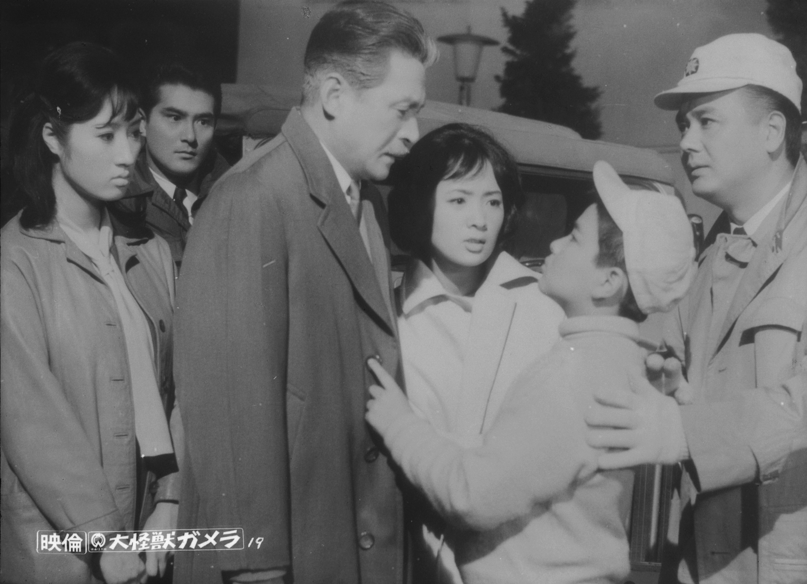 Child actor Yoshiro Uchida (second from right) in a publicity photo for the original GAMERA. Photo courtesy of Kadokawa Pictures. © KADOKAWA 1965Source: Avery Guerra Official Site: daibutsukaikoku.com