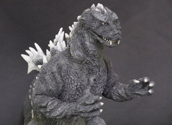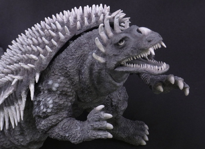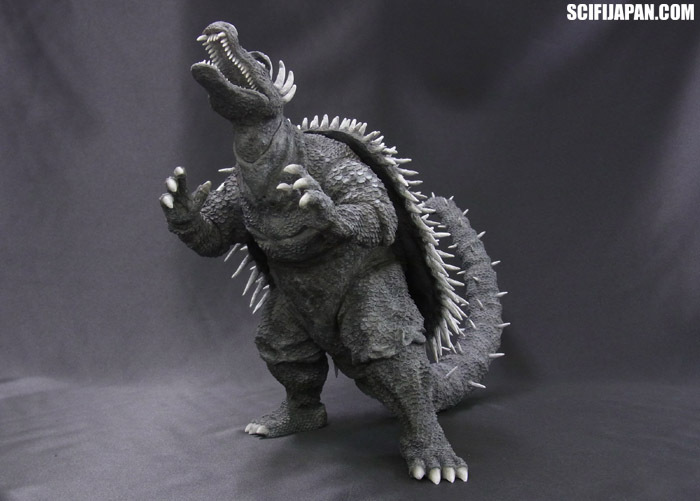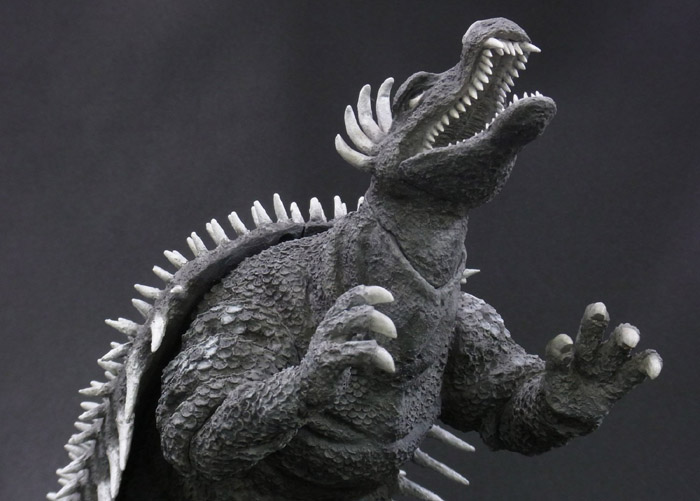 The desperate struggle in Osaka revived! The Japanese toy company X-Plus Co., Ltd. has provided SciFi Japan with information and high-res photos of their two figure set of Godzilla and Anguirus from the 1955 film GODZILLA RAIDS AGAIN (??????, Gojira no Gyakushuu). Originally released separately in 2011, the figures are now being sold together in a special promotion with Premium Bandai. Both monsters have a monochrome coloration to replicate the texture of the black-and-white movie in which they appeared. This item is sold exclusively by X-Plus` official Shounen Ric website and the Premium Bandai website and will not be available from retail stores.