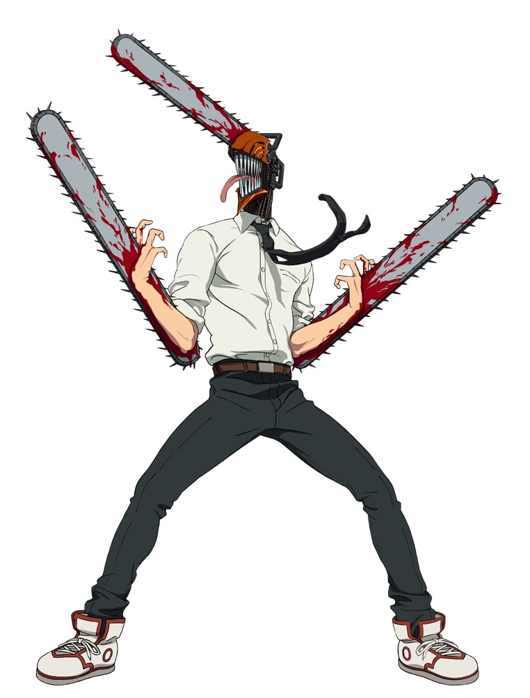 Denji's form after becoming the “Chainsaw Man” by contracting with Pochita, the “Chainsaw Devil”. He attacks demons by slashing them with chainsaws sprouting from his head and both arms.