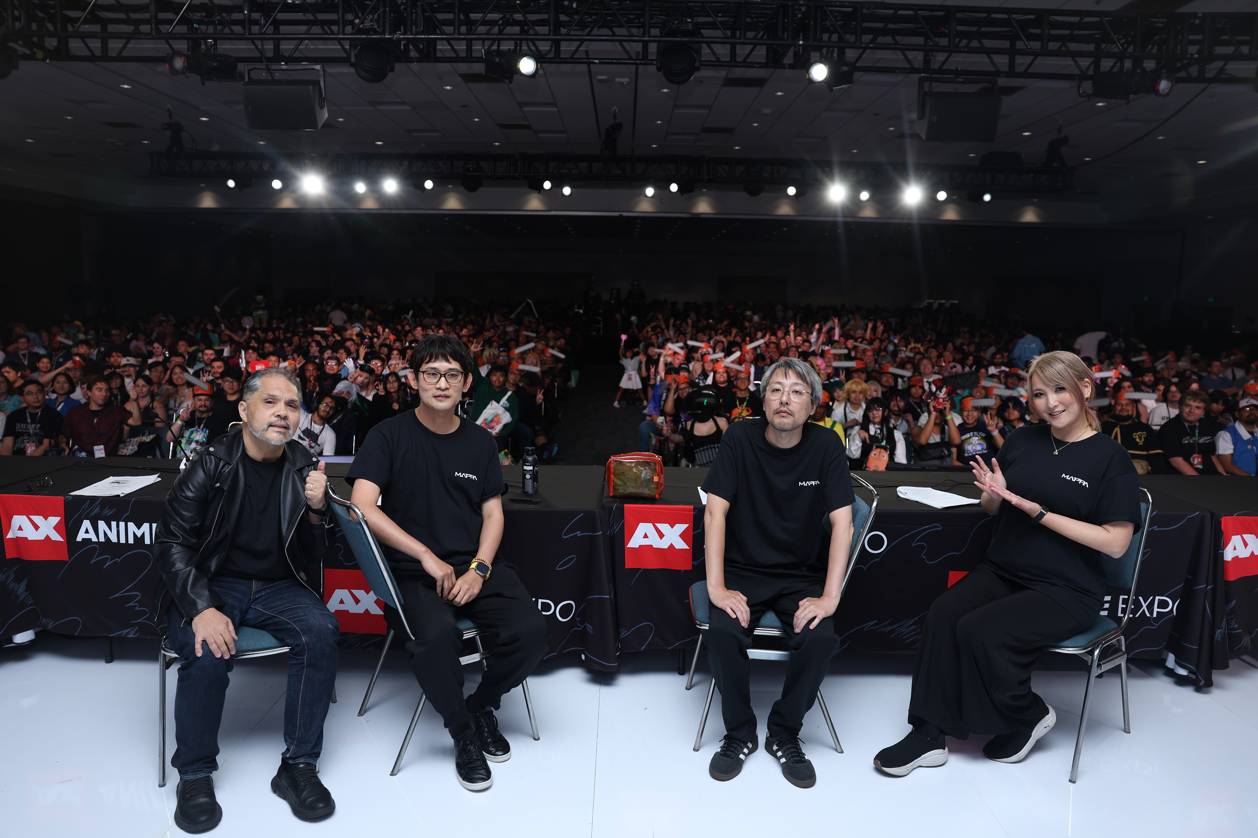 Business and Licensing Producer Scott Dolph, President Manabu Otsuka, Executive Vice President Hiroya Hasegawa and Moderator Risa Light at the MAPPA CHAINSAW MAN - THE MOVIE: REZE ARC panel at Anime Expo 2025. Photo courtesy of Sony Pictures. © 2025 MAPPA/CHAINSAW MAN PROJECT ©Tatsuki Fujimoto/SHUEISHA