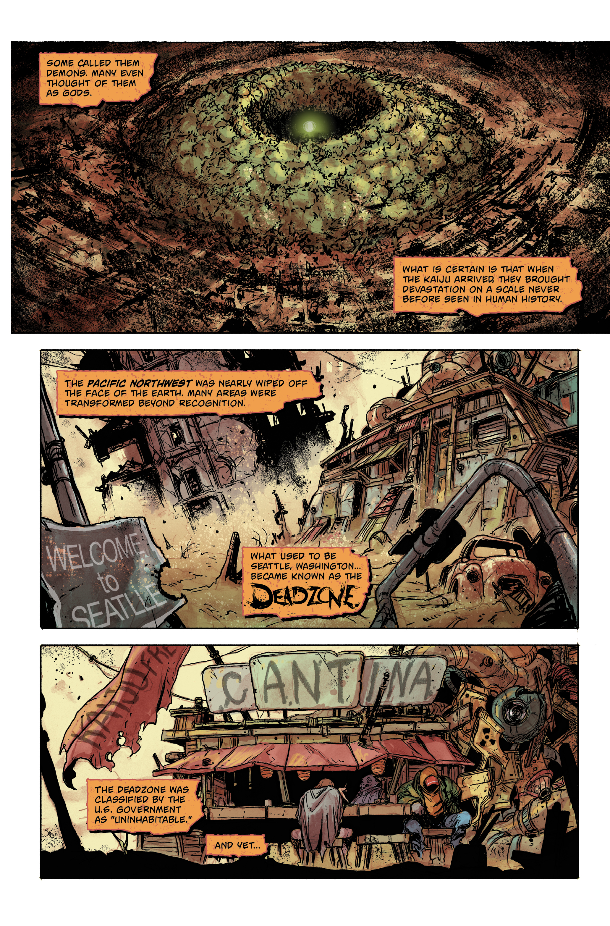 Inside the new IDW Godzilla universe, there exists a mystery larger than any other-what is the Deadzone? Inhabitants of this new world know the Deadzone to be a walled-off portion of the Pacific Northwest, sequestered after the most disastrous Godzilla attack the country has ever faced. The government would have its citizens believe that nothing is still alive inside the Deadzone... but do you believe that?