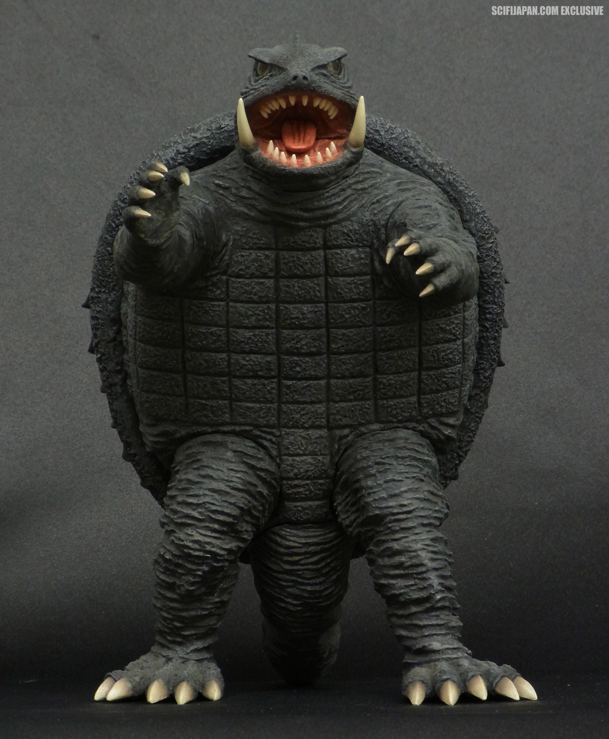Daiei Daikaiju Series: GAMERA VS BARUGON Set -- Limited Market Reissue /??????? ????? ?????? ???????????? ?????? Product Size: Gamera Height Approximately 23cm (9 Inches)/4 Legged Pose Length Approximately 36.5cm (14.4 Inches), Barugon Height Approximately 17.5cm (6.9 Inches)/Length Approximately 53cm (20.8 Inches) Material: PVC (Vinyl) Specifications: Painted Package: Window Box Shipping: Late April 2016 - Early May 2016 Shounen Ric Price: ¥23,760 (Approximately $212.99 US, Tax Included) DeAgostini Price: ¥22,000 (Approximately $197.22 US, Tax Included) DeAgostini Japan and X-Plus are also partnering on two-figure set from GAMERA VS BARUGON (????? ????????, Daikaijuu Kettoo: Gamera Tai Barugon, 1966). The set pairs two figures previously sold separately by X-Plus. First released in June 2013, Gamera (1966 Version) comes with multiple limb pieces to allow the figure to be displayed in either bipedal or quadrupedal poses. Barugon (initially sold in January 2013) also comes with a bonus extended tongue. This Limited Edition set is available exclusively from Shounen Ric and DeAgostini.